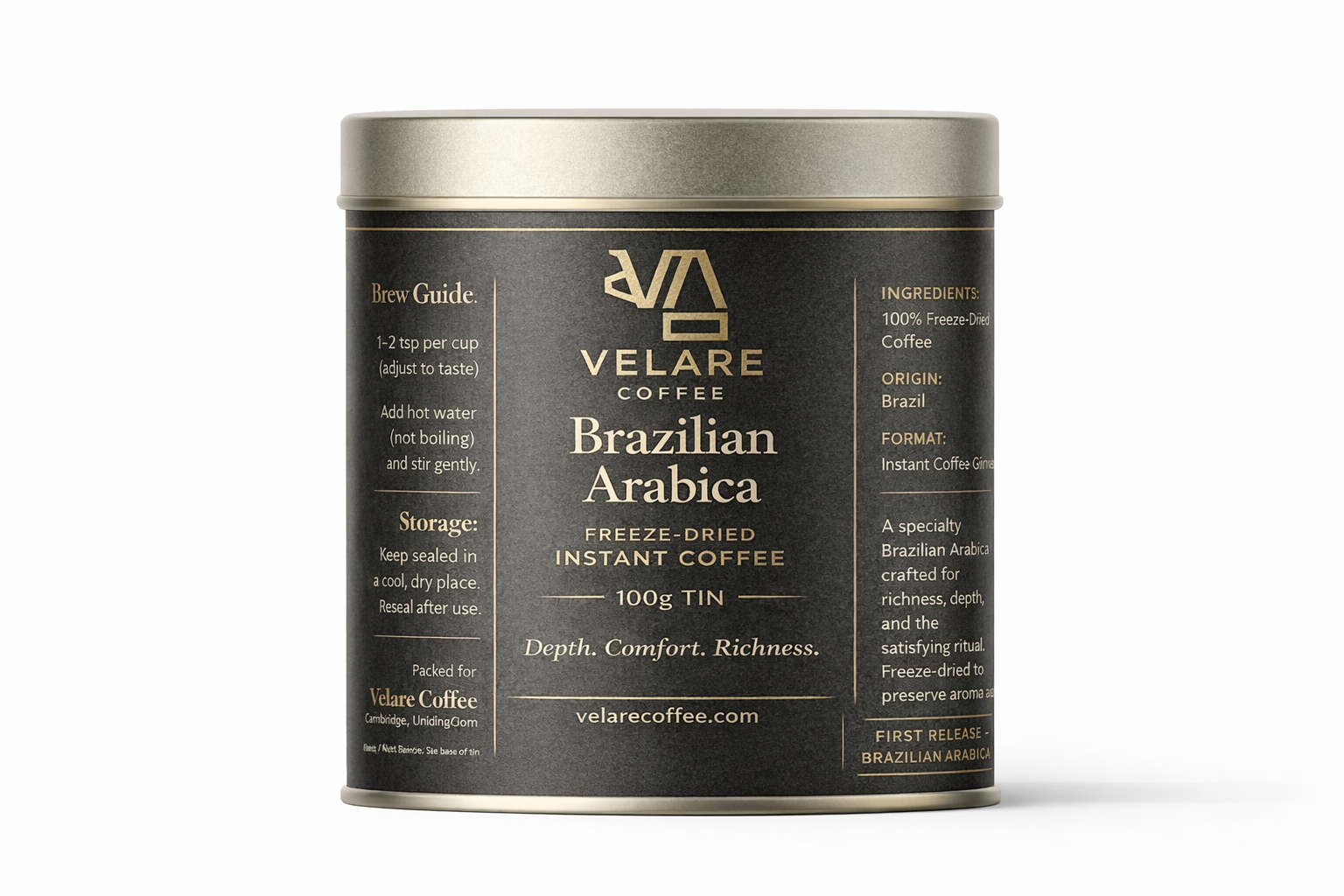 Velare Freeze-Dried Coffee — Brazilian Arabica (100g Tin)